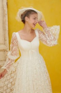 Hem nostaljik bir yanı olsun hem de aşırı retro görünmesin diye düşünülerek seçilmiş bir gelinlik varsa karşınızda kesinlikle doğru seçim. Belki de bu nüansı 1994 yılında piyasa sürülmesinin havasını her zaman estirsin diyedir.