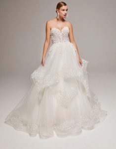 Zarif, duru, ince detaylarla işlenmiş bir gelinlik seçen gelinler için;